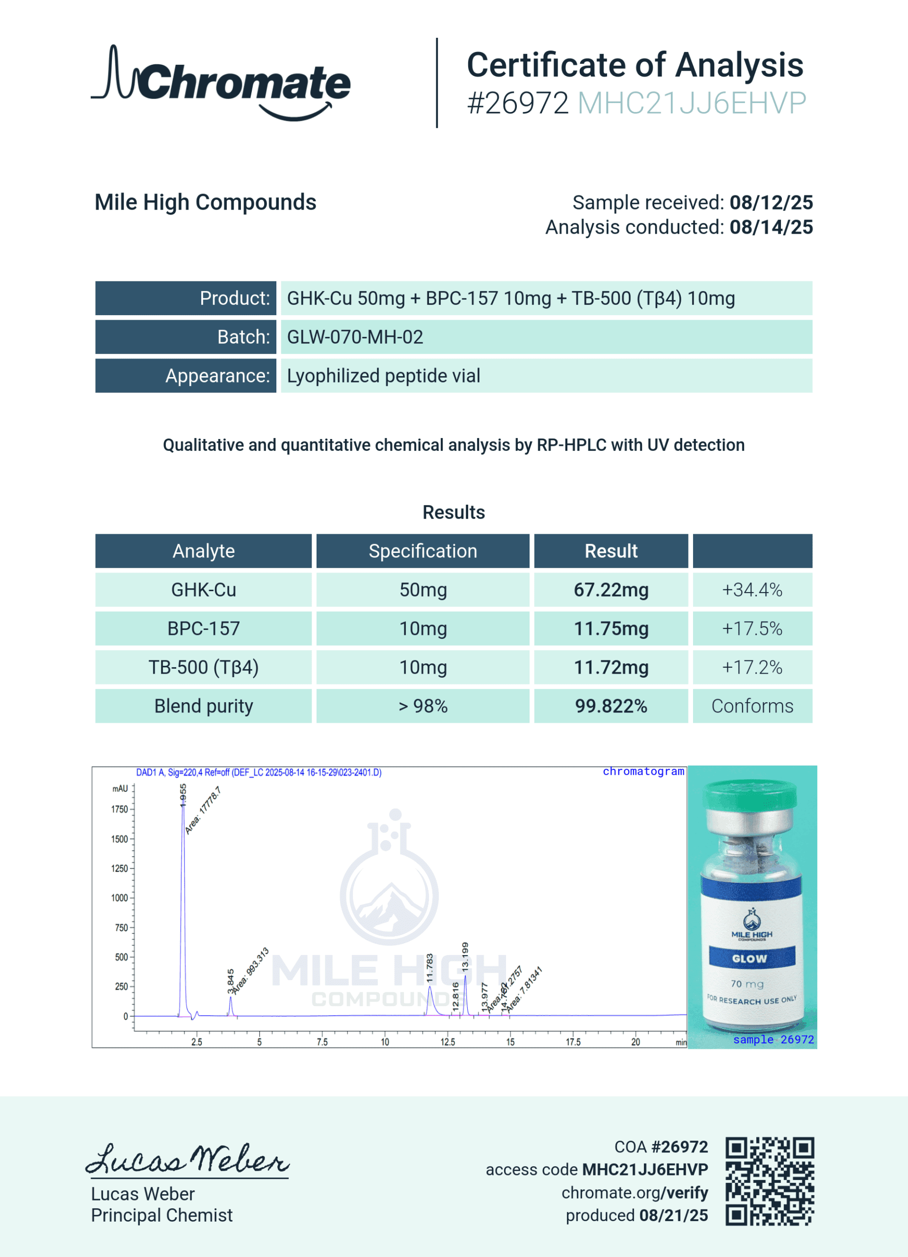 The GLOW Blend combines three of the most studied tissue repair peptides into a single lyophilized preparation.