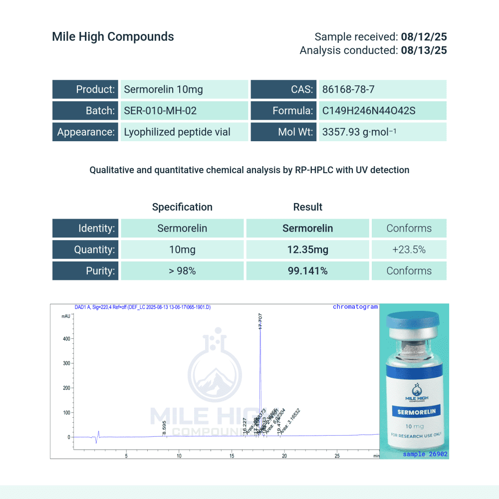 Sermorelin (GHRH 1-29 NH2) is the 29-amino acid N-terminal fragment of endogenous Growth Hormone-Releasing Hormone. Formerly FDA-approved (Geref, Serono).